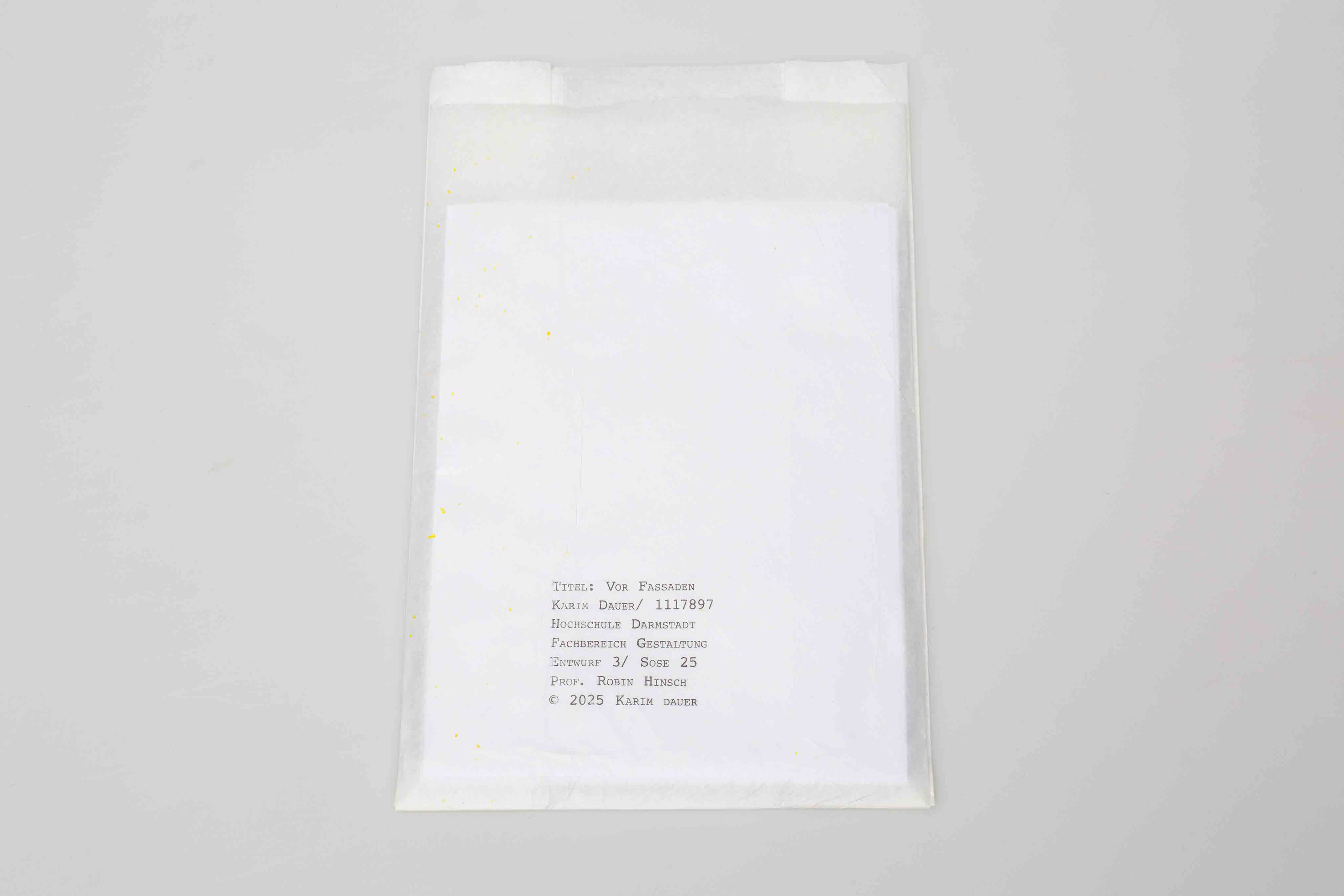 Die Arbeit wird in zwei Narrativen präsentiert: Die Ausstellungsansicht zeigt eine laute, teils surreal wirkende Welt, in der sich drei Protagonist:innen durch fragmentarische Szenerien und künstliche Umgebungen bewegen. Die Publikation dagegen stellt eine ruhigere, reflektierte Sichtweise dar. Sie regt mehr zum kritischen Hinterfragen ver-schiedener Attribute an und steht in ihrer Anordnung noch stärker im Dialog zueinander. Die Arbeit ist allgemein als ein offener Prozess angelegt und für mich persönlich nicht abgeschlossen.